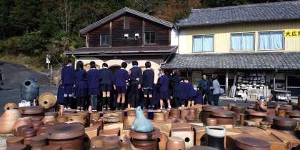 宗陶苑に着きました。まずは、学級写真を撮影しました。これから陶芸体験です。どんな作品が出来上がるのかとっても楽しみです。
