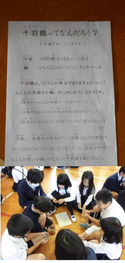 その後、班ごとに6年生に教えてもらいながら一つ一つていねいに折っていました。長池小学校の平和への願いを届ける予定です。