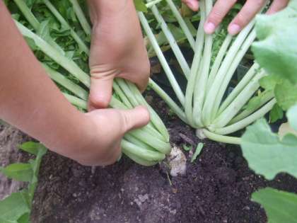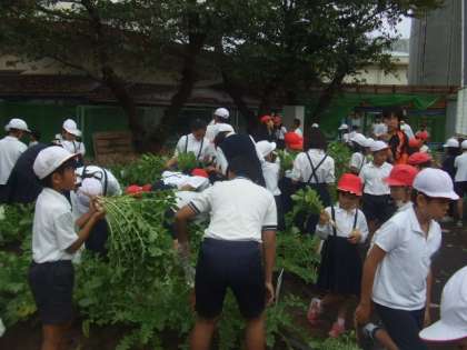 いよいよ今回の「ふれあいタイム」で、今まで育ててきたマイ大根を1本に間引きしました。抜いた大根も結構大きくなっていて、もう大根としても食べられそうなものもありました。畑に残った田辺大根は、12月に収穫するまで大切に育てなければいけない大事な1本です。これからアブラムシ・アオムシ等の虫に食べられたり、病気にかかったりしないように毎日世話をしていきます。