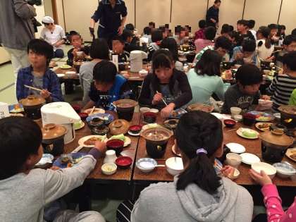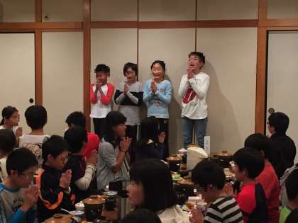 一日フルで活動した6年生たち。さぞかしお腹もすいたことでしょう。いよいよ夕食です。今日のメニューはすき焼き鍋!この充実したメニューなら、みんな満足するでしょうね。いただきます!