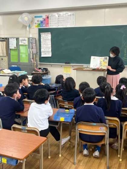 絵本や、紙芝居などを読み聞かせしてもらい、みんな真剣に聞き入っていました。