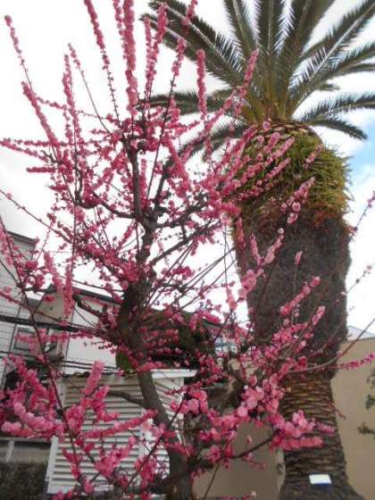 そんな中ですが、学校の紅梅も花を開き始めました。今年は、例年より少し早く花を咲かせているようです。