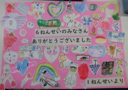 約2週間にわたり、給食のお手伝い等をしてくれたお礼に、1年生から6年生へ絵のプレゼントを渡しました。1年生全員から「ありがとうございました!」と言われ、嬉しそうに「どういたしまして。」と応えていました。6年生は休み時間に給食を運び、1年生のお手伝いを頑張ってくれていました。さすが6年生ですね。最高学年として、これからも活躍してくれることを期待しています。