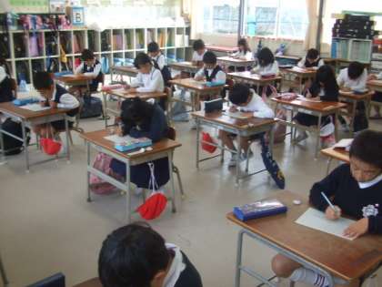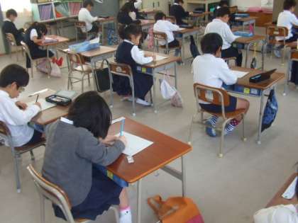 毎週金曜日の朝に長池小学校独自の取り組みである、「漢字道場」を実施しています。1年生は、今までに学習した漢字の数が少なかったので、先週から漢字道場に取り組んでいます。みんな事前に自分が挑戦する級を練習して、意欲的に取り組んでいます。1〜5級までクリアすると一段合格となり、賞状が渡されます。合格を目指してがんばりましょう。