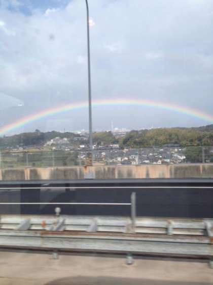 高速に無事乗って落ち着いたようです。なんと、きれいな虹がかかっているではないですか!