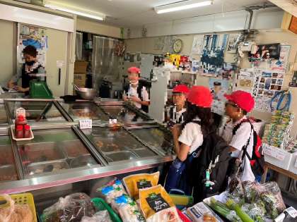 5年生が社会見学で「コリアタウン」へ行ってきました。鶴橋駅を降りてから、商店街を通り抜けて、御幸森神社へ向かいました。そこから班にわかれて、コリアタウンを見学しました。500円のおこづかいで何を買おうかと考えながら、お店をめぐりました。お店の人が「おまけしといたよ!」と言ってくれることもあり、嬉しそうに家族へのお土産を買っていました。