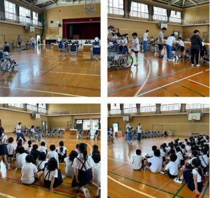 4年生が車いす体験をしました。車いすの人が普段どのようなところで困っているのか、どのようにサポートすればよいのかを学びました。