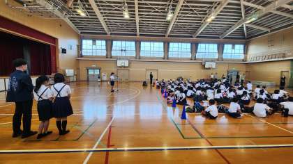 出発式では、代表児童が、修学旅行で楽しみにしていることを話していました。一人一人が考えて行動して、皆が楽しい修学旅行になるようにしたいです。