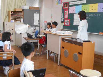 みんなの前で発表した友だちに対して、「いきがピッタリで上手かった。」という感想が聞かれ、とても楽しいリズム作りの学習になりました。