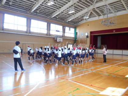 5年生はソーラン節の練習をしています。声を出す時の大きさやタイミング、並び方の練習などをしていました。