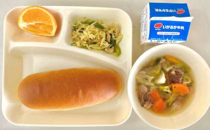 ☆給食では、牛肉やウインナー、じゃがいも、キャベツ、にんじん、パセリを使っています。