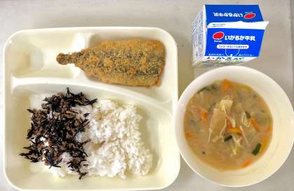 ☆今日の給食では、「いわしフライ」として出ます。骨ごと食べられるため、骨や歯を強くする「カルシウム」もたくさんとることができます。
