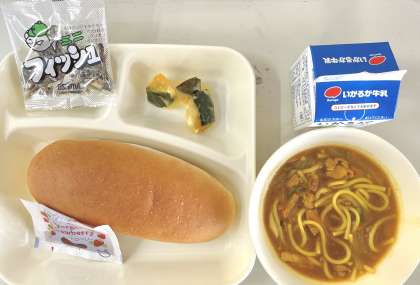 かぼちゃに野菜ブイヨン、ノンエッグドレッシングを合わせて下味をつけて、焼き物機で焼いて作ります。