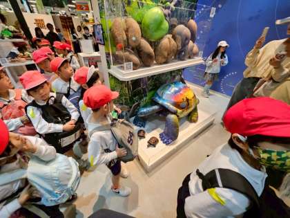 コモンズ館を見学しています。