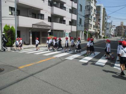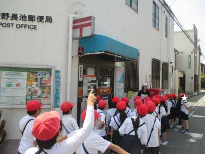 2年生が、長池の町たんけんにクラスに分かれて出かけました。