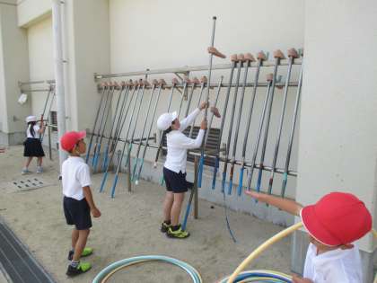昨日は曇りでしたが、運動場のコンディションが悪くぬかるんでいた為、中止だったので、最終日はできてよかったです。後片付けも最後まで美しく頑張っている姿が見られました。