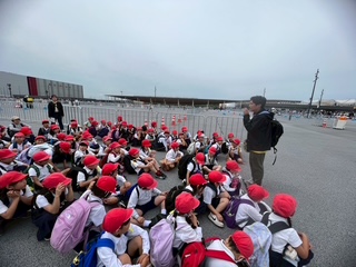 入場するのに少し時間がかかりましたが、無事入場できました。初めにクラスの写真を撮りました。いよいよ見学スタートです。