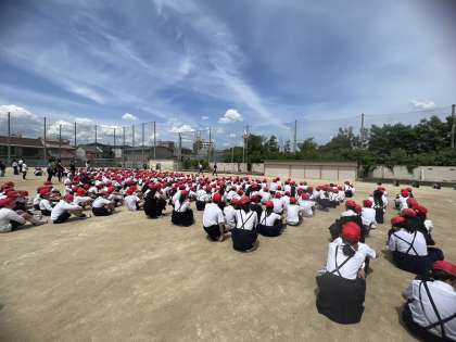 安全が確認できたという放送が入ってから、真剣に素早く、きびきびと運動場に避難することができました。