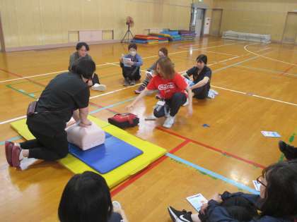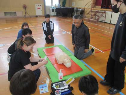 事故が起こってしまった時の対応や連絡ルート、AEDの校内設置場所や担架の置き場所なども確認しました。