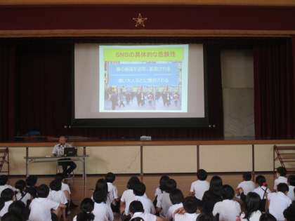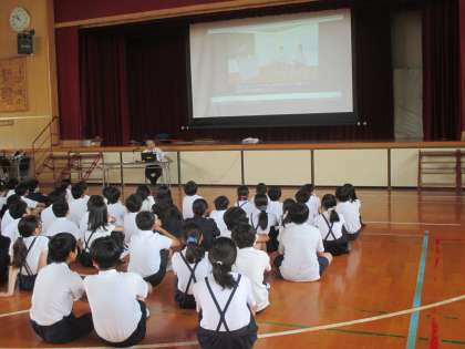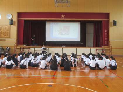 9日、6年生を対象に「非行防止教室」を講堂にて行いました。