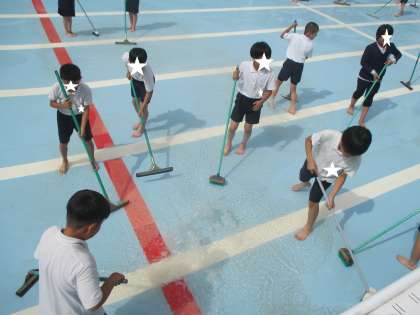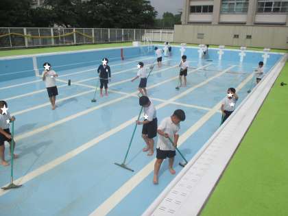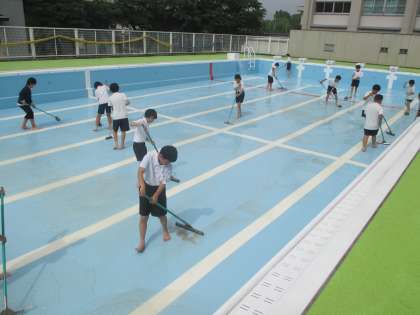 運動委員会のみなさんは、委員会の時間を使ってプール清掃に取り組んでくれました。