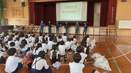 ごみの行方やごみを減らすための3R「Reduceリデュース」「Reuseリユース」「Recycleリサイクル」ごみの分別についての話を聞きました。