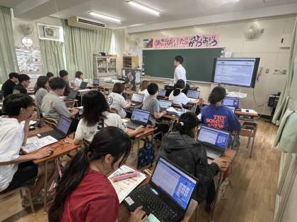 教育委員会とベネッセの講師先生に来ていただき、学習支援ソフト「ミライシード」の説明がありました。