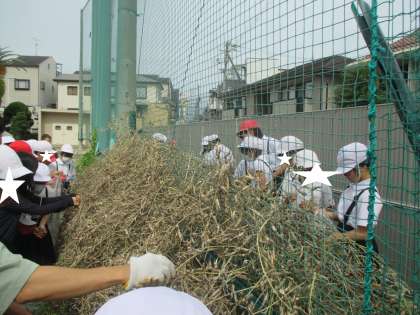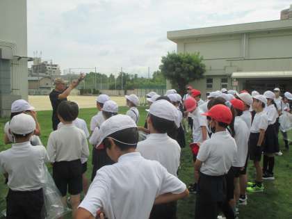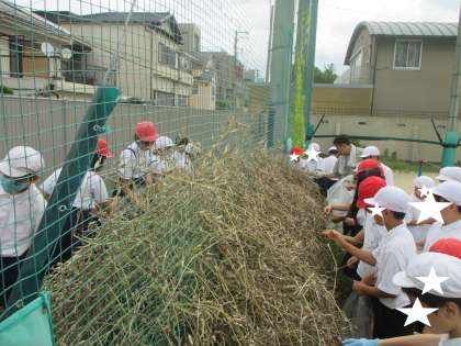 学習園と運動場の遊具の裏に分かれて作業しました。