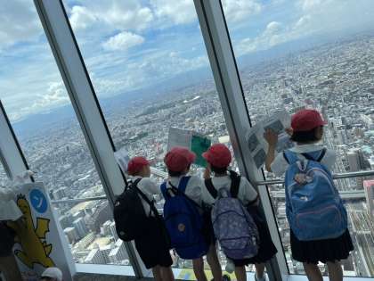 ハルカスへ見学に行きました。方角を確認して、色々なものを見つけることができました。「あ!学校が見えた」と大喜びでした。