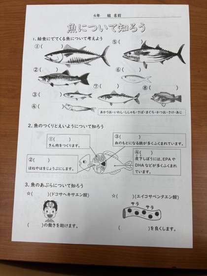給食に出てくる魚のクイズ、魚の栄養、食べ方について学習しました。
