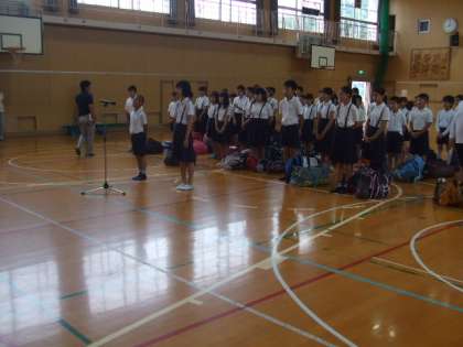 今日から6年生は自然体験学習。淡路島への2泊3日の旅へと出発しました。早朝に激しい雨が降っていたので心配していましたが、それが登校するころにはピタッと雨があがりました。みんなの日頃の行いがいいのでしょうね。昨夜はどきどきわくわくして十分に眠られなかったのかもしれませんね。出発式で付添の職員紹介と児童代表のあいさつがありました。一人の欠席者もなく全員そろって元気にバスに乗り込み、長池小学校をあとにしました。