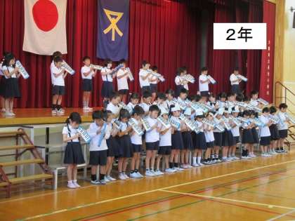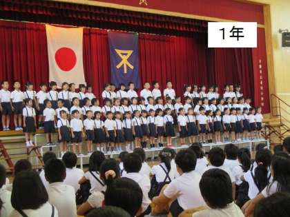 梅雨だというのに朝から強い日差しが照る1日となりました。竣工式の前に、全校児童が講堂で「お祝いの会」を行いました。5分くらいずつでしたが、どの学年も工夫された素晴らしい発表でした。みんなの長池小学校への思いが感じられました。