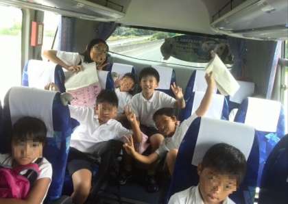 バスの中では、バスレクやカラオケをして盛り上がってます。