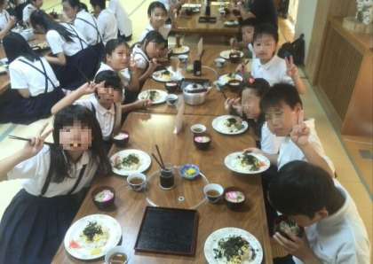 無事に宿舎に到着しました。林間学習の最初の食事です。