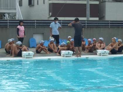 雨が降っていたので、午前中の夏季水泳指導は中止になりましたが、午後は雨も止んだので特別練習がありました。いよいよ明日になった泳力記録会にむけて、参加する児童が自分の出場する種目を中心に練習しました。なみはやドームの本格的な50mプールで自分の力を発揮してほしいですね。