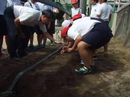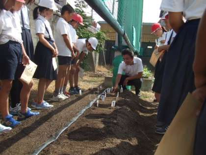 7日から2学期のふれあいタイムが始まります。その事前学習として、「田辺大根サポーター」のみなさんにゲストティーチャーとして来ていただいて、種の植え方について教えていただきました。6年生は、1〜5年生に教えていただいたことを伝えて「ふれあいタイム」をすすめていきます。リーダーとしての自覚と責任がますます大きくなってきます。