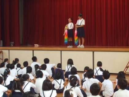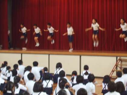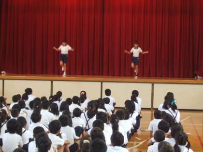 19日の朝の児童集会は、運動委員会の発表でした。ナガリンピック週間が行われているので、いろいろな縄跳びの種類を発表していました。委員会のメンバーは、このために練習をつんできていたので、とても上手に見本をしていました。