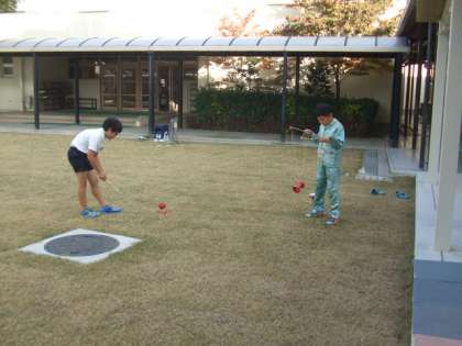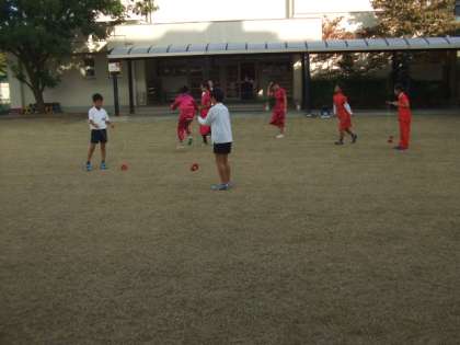 10月18日(火)にクラブがありました。芝生広場で国際交流クラブの児童が中国ゴマに挑戦していました。なかには鮮やかな衣装で、練習している子どもたちがいました。みんな楽しそうに中国ゴマの練習をしていました。