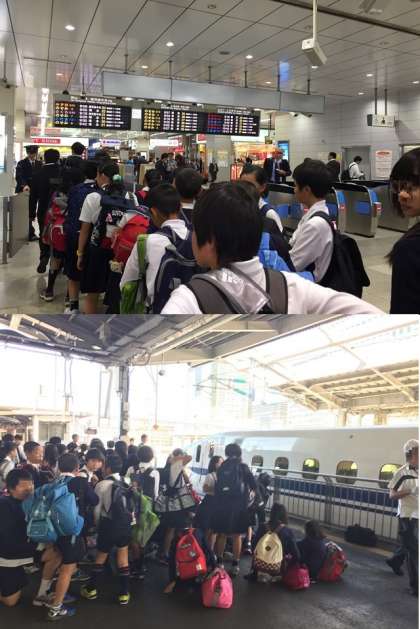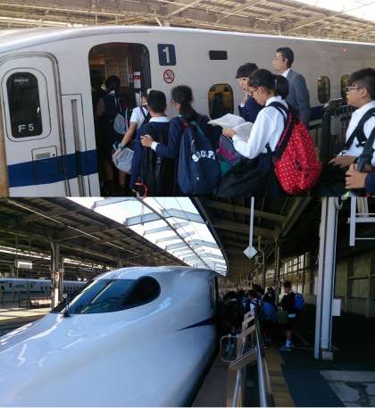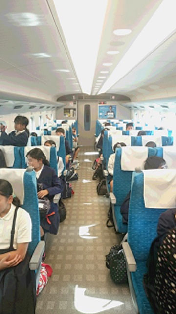 ラッシュの地下鉄をひたすら我慢して、新大阪に到着し、やっと新幹線に乗りました。先頭車両の1号車です。