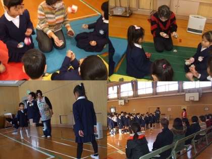 17日(火)に1年生が、地域の方々にゲストティーチャーとして来ていただいて、「昔遊び」の学習をしました。けん玉・あやとり・お手玉・コマ回し・缶ぽっくり・ゴムとびと子どもたちが、あまり経験のない遊びを体験することができました。ありがとうございました。