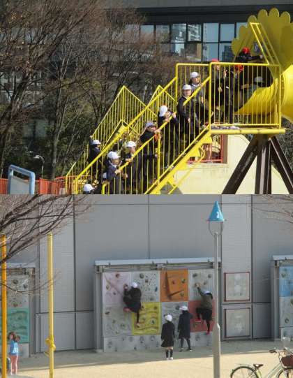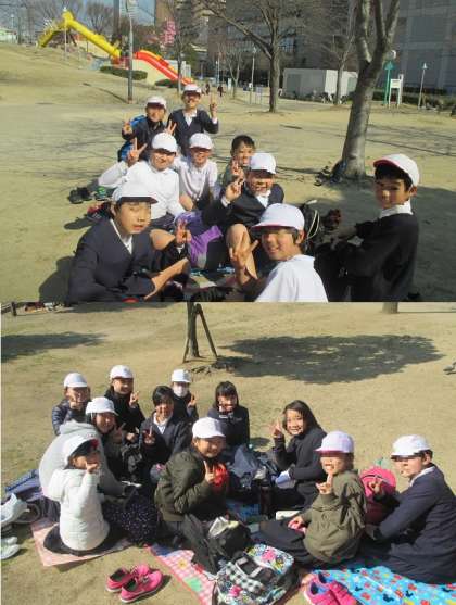 5年生は、読売新聞社に社会見学にいきました。13時からの見学だったので、学校で給食を食べてからでは間に合わないので、近くの扇町公園で昼食を食べました。お弁当を食べてから少し時間があったので、遊具などで遊びました。寒い日が続いていましたが、この日は朝から晴天に恵まれて、外でも活動しやすかったです。