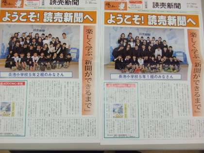 読売新聞社の中は、写真撮影はできませんでしたが、新聞ができるまでをくわしく教えていただきました。帰りにクラスごとの集合写真がのった新聞をいただきました。