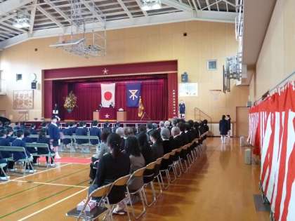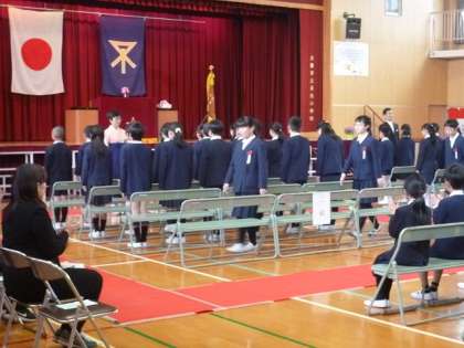 22日(水)に多くの方々にご臨席賜る中、第88回卒業証書授与式がおこなわれました。前日は雨でしたが、式当日は青空になりました。一人の欠席者もなく48名の卒業生は、希望に胸を膨らませながら、大きな声で決意を語り、卒業証書を校長先生から渡してもらいました。