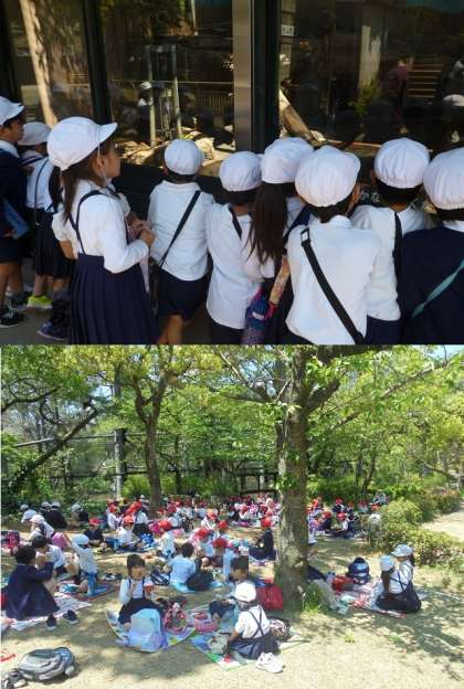 1、2年生が天王寺動物園へ春の遠足に行きました。1年生にとっては初めての校外学習です。天気にも恵まれて、元気に出発しました。