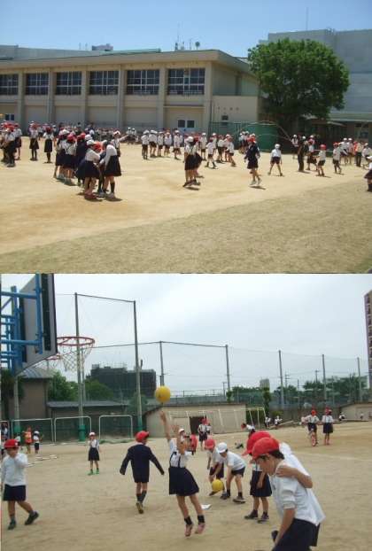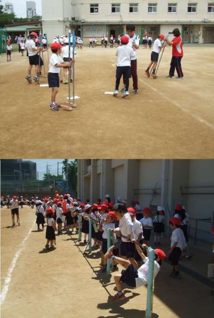 5月は、低学年(鉄棒・遊具)、中学年(竹馬・ボール)、高学年(大縄・一輪車)に取り組みました。