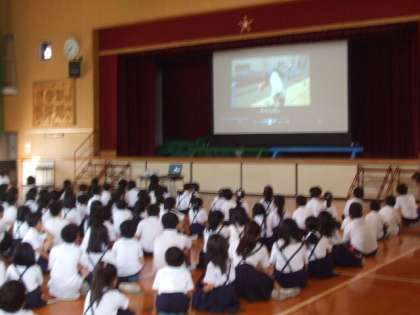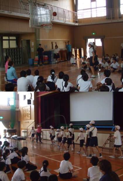 今朝の児童集会で、運動委員会がナガリンピックの種目についての発表がありました。一輪車・フラフープ・長なわ・平均台・ボール運動・鉄棒などの紹介や上手にするポイントなどを実技や映像を使って分かりやすく発表してくれました。見ている子どもたちから技が披露されるごとに「ワー!」という歓声がおこっていました。