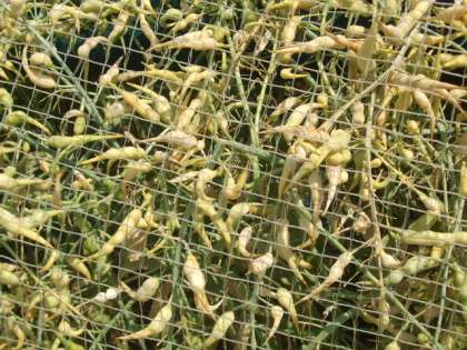 種取り用の田辺大根の畑にネットをかけました。この畑で採れた田辺大根の種を、みんなが2学期に植えることになります。今年も鳥たちはよく分かっているようで、そろそろ色が付き始めてきた種の近くを飛び回っています。もうすでに食べられているものもあります。乾燥して色が茶色になるまでこのネットが種を守ります。長池小学校の田辺大根の栽培は1年間続いています。