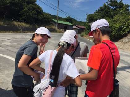 浜辺を歩いたり、山登りしたりしながらなぞを解きます。