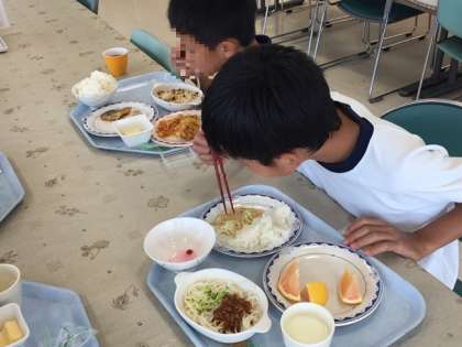 2日目のお昼ご飯です。いっぱい体を動かしたのでたくさん食べているようですね。淡路島の牛乳もたくさん飲んでいます。
