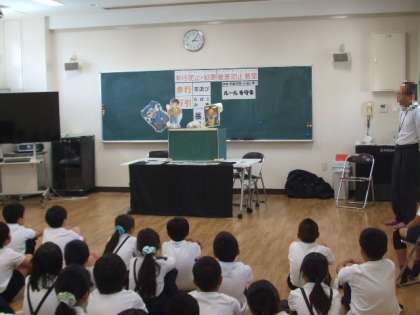 非行の未然防止、犯罪の被害防止を図るために大阪府少年サポートセンターの協力を得て、「非行防止教室」を実施しました。子ども達は、万引きは悪いことだとは分かっていましたが、両親や周りの人を悲しませたり、迷惑をかけたりすることを再認識し、これからも絶対してはいけないと決意を新たにしていました。